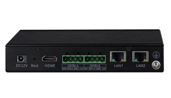 凤凰端子接口(两组,4pin一组)、1*HDMI、复位按钮、电源开关、LED指示灯(电源灯红色、系统灯绿色) |